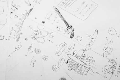 そして、 出てきたアイデアをベースに何種かデザインを制作。 これじゃないあれじゃないと試行錯誤を重ね・・・ |